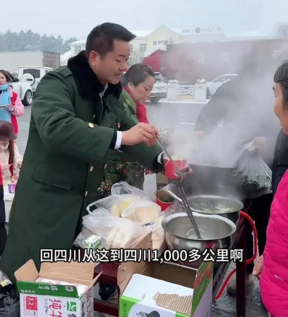 面临恶劣冰雪天气带来的大皆车辆淹留,搭客生存繁难,舒明和他的团队们,带着1000桶随意面、数百个鸡蛋、面包以及当地特产随州泡泡青,在高速公路收费站口搭起临时赈济点,为搭客提供繁荣昌盛的面条和开水。