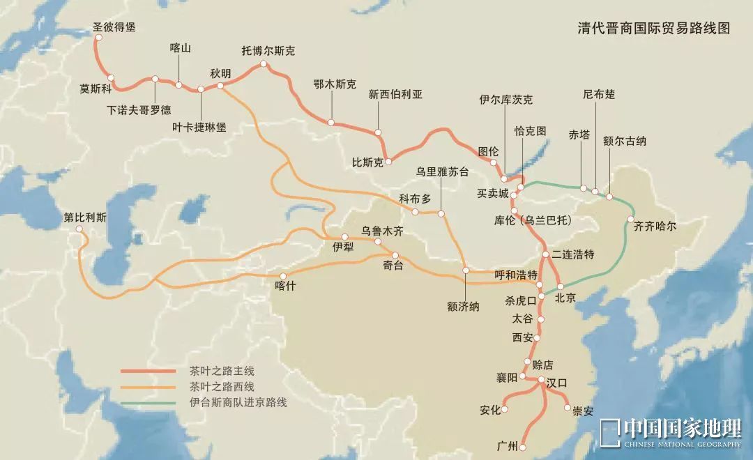 清代晋商国际贸易路子图。图源:中国国度地舆2015年10期