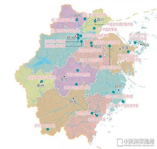 浙江省主要专科市集散播图。图源:中国国度地舆2012年02期
