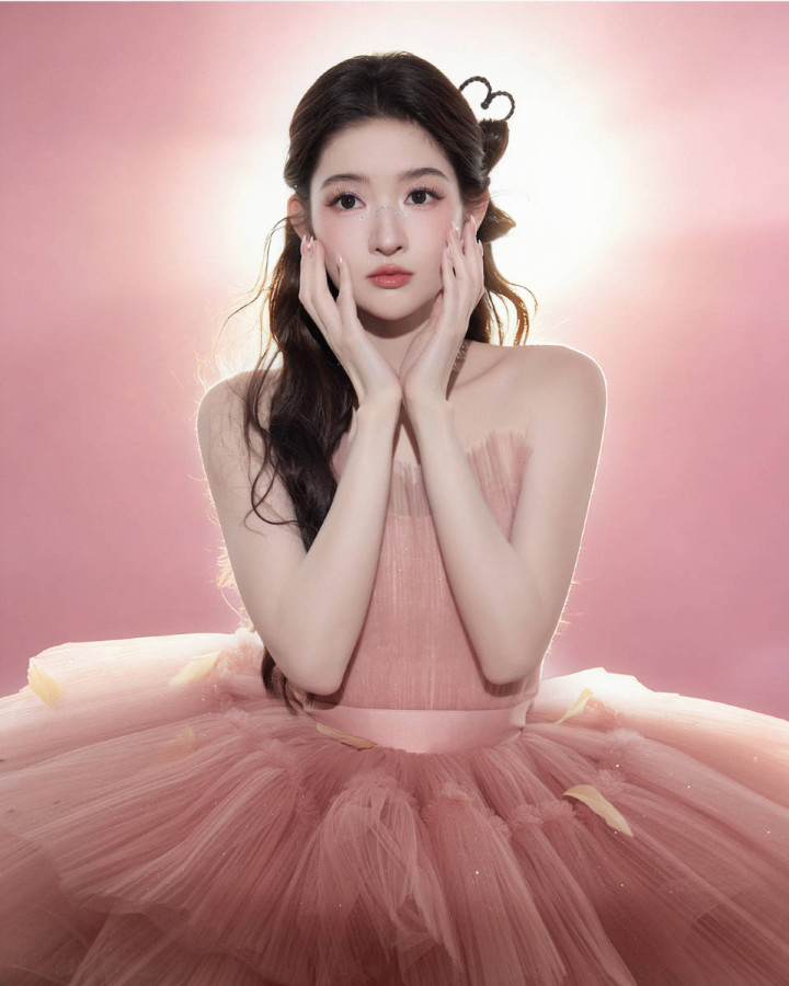 薄纱与缎面在光影卑鄙转色泽,衬得她肌肤胜雪,检朴妆容搭配凉爽眉眼,冷艳中藏着仙女清甜,气质干净又高档。