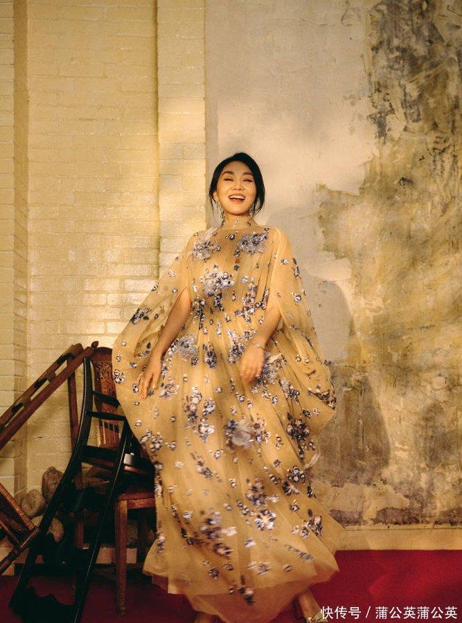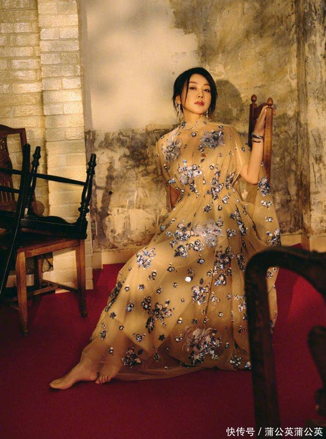 闫妮的新选取轻纱裙太有焰火气了!