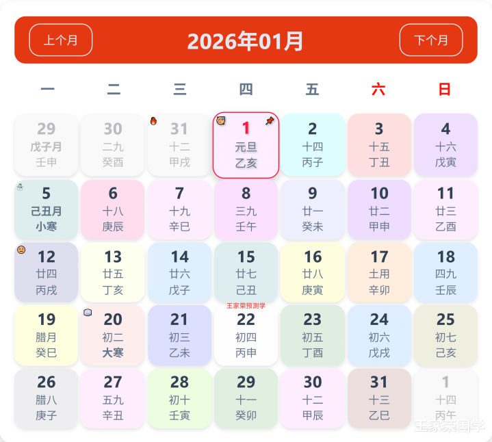 老历本看日子生肖运势查询(2026年1月1日)