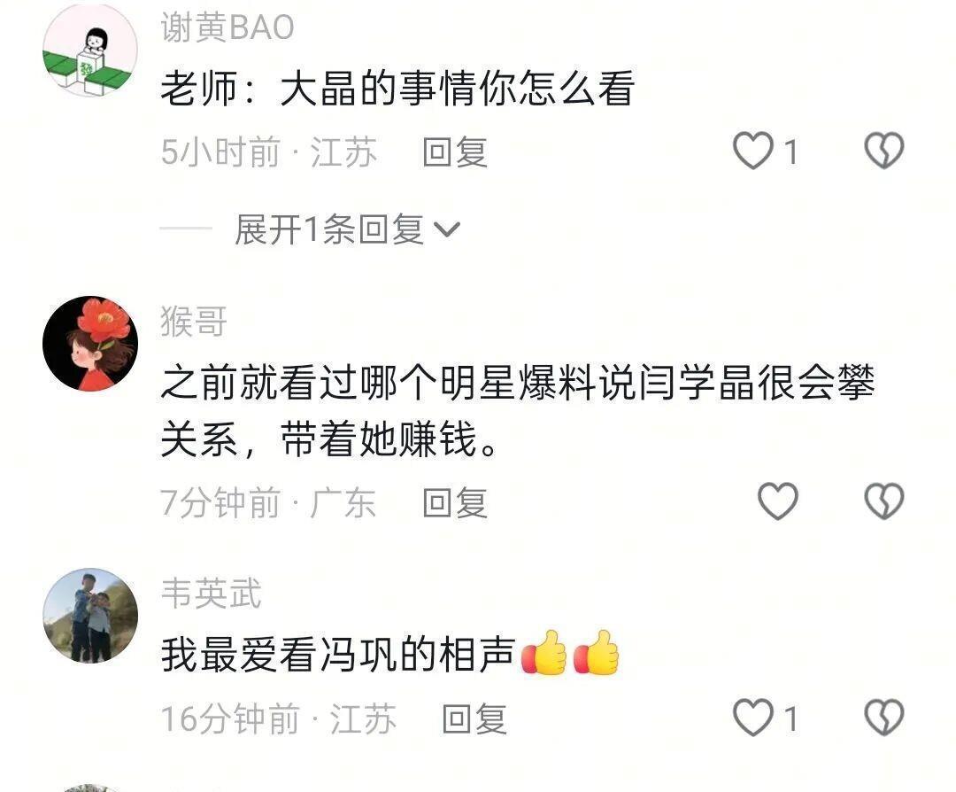 从网友的辩论来看,他们已经把冯巩和闫学晶归在一块,合计闫学晶变坏了,而冯巩也有点牵累!