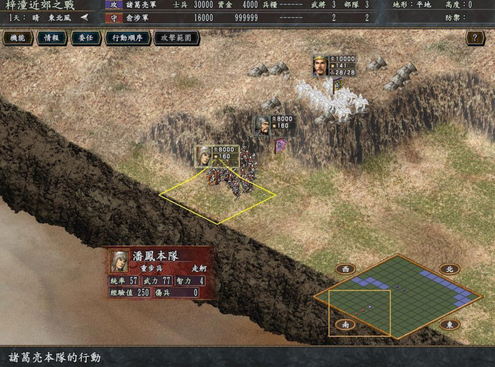 《三国志11》是系列内部初度使用立体舆图的,舆图功能方面要比9代高等好多,模仿了一些10代战时局图的元素,比如落石、堤坝、林地等。仅仅落石画的确乎有点假,莫得10代内部看着高亢,可能为了更好让玩家发现这几个石头卓尔不群吧。