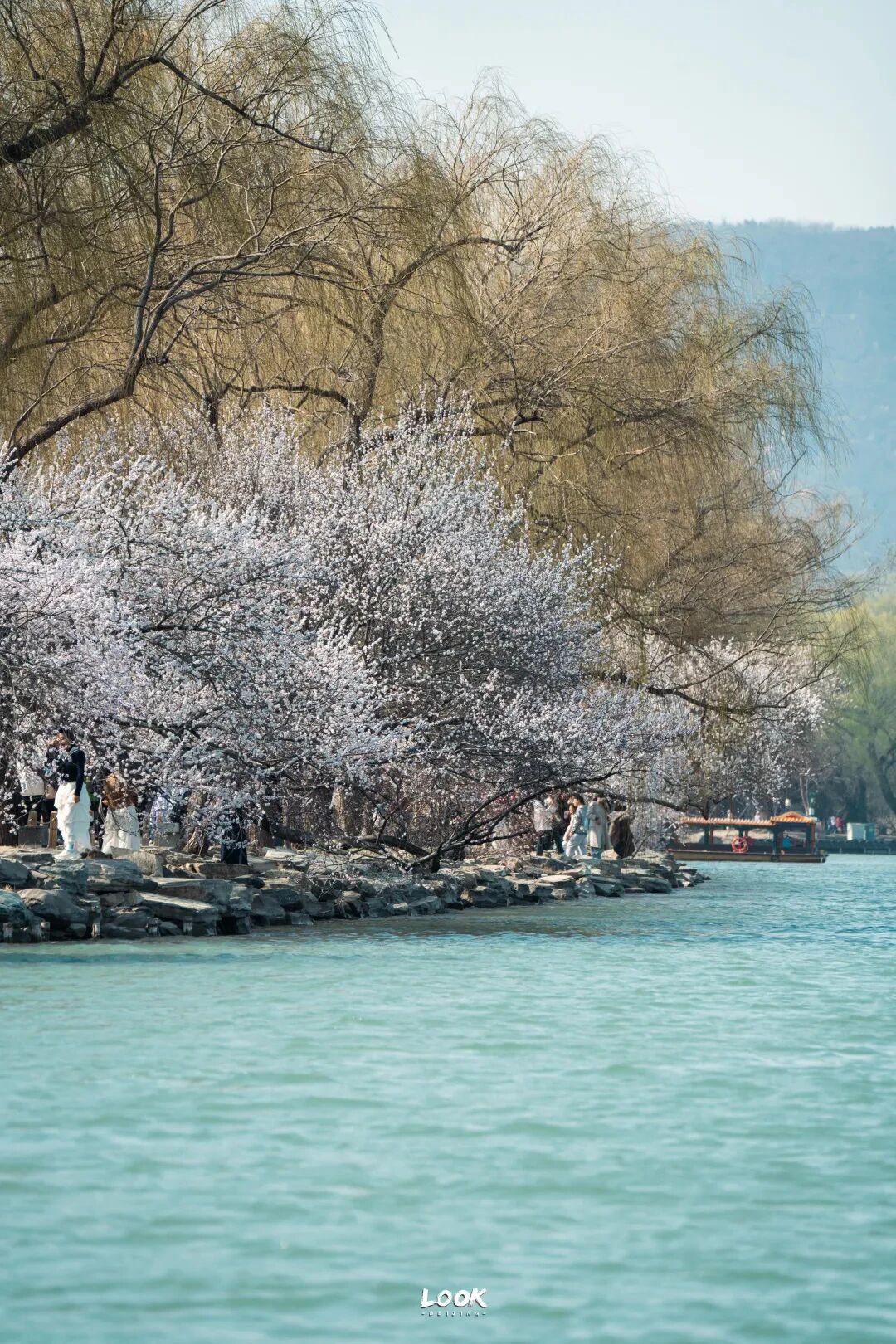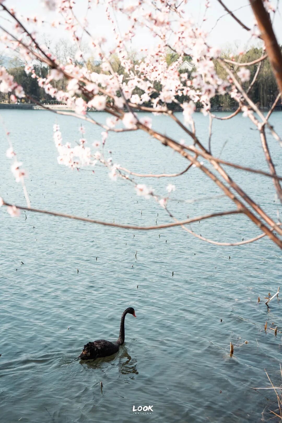 南如意门进,西堤最南端,这边有一棵大树,挨着它就能拍到山桃花与柳桥的合影。下昼光泽柔柔,花瓣能透出光来愈加唯好意思。要是运道的话,还能遭遇黑天鹅。